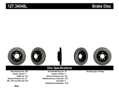 StopTech Drilled and Slotted Sport Rotors are 1-piece direct replacement brake discs for factory brake systems and stock calipers that look great behind your wheels – and offer significantly improved braking performance. The unique cross-drilling and slotting aids with heat and brake dust dispersal; prevents glazing of the pads; adds bite and improves wet and dry braking performance. Built to last; the black e-coating provides protection from corrosion and the high carbon metallurgy (in most applications) offers quieter operation; better crack resistance and increased performance.