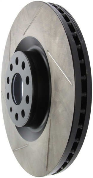 StopTech Slotted Sport Rotors are 1-piece direct replacement brake discs for factory brake systems and stock calipers that look great behind your wheels – and offer significantly improved braking performance. The unique slotting aids with heat and brake dust dispersal; prevents glazing of the pads; adds bite and improves wet and dry braking performance. Built to last; the black e-coating provides protection from corrosion and the high carbon metallurgy (in most applications) offers quieter operation; better crack resistance and increased performance.