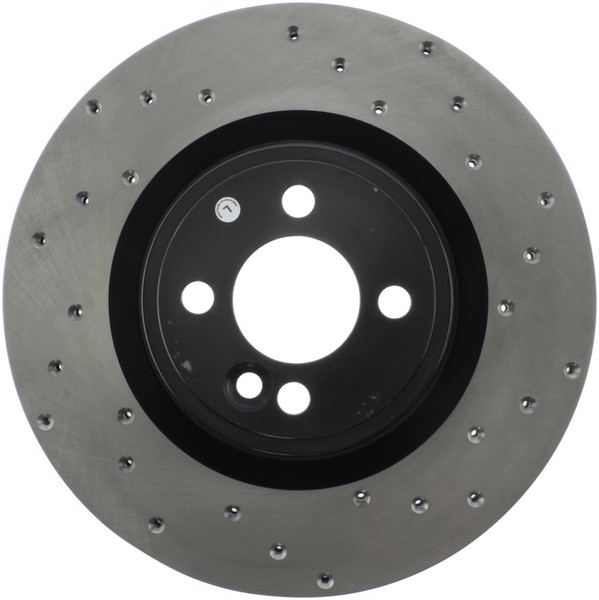 StopTech Drilled Sport Rotors are 1-piece direct replacement brake discs for factory brake systems and stock calipers that look great behind your wheels – and offer significantly improved braking performance. The unique cross-drilling aids with heat and brake dust dispersal; prevents glazing of the pads; adds bite and improves wet and dry braking performance. Built to last; the black e-coating provides protection from corrosion and the high carbon metallurgy (in most applications) offers quieter operation; better crack resistance and increased performance.